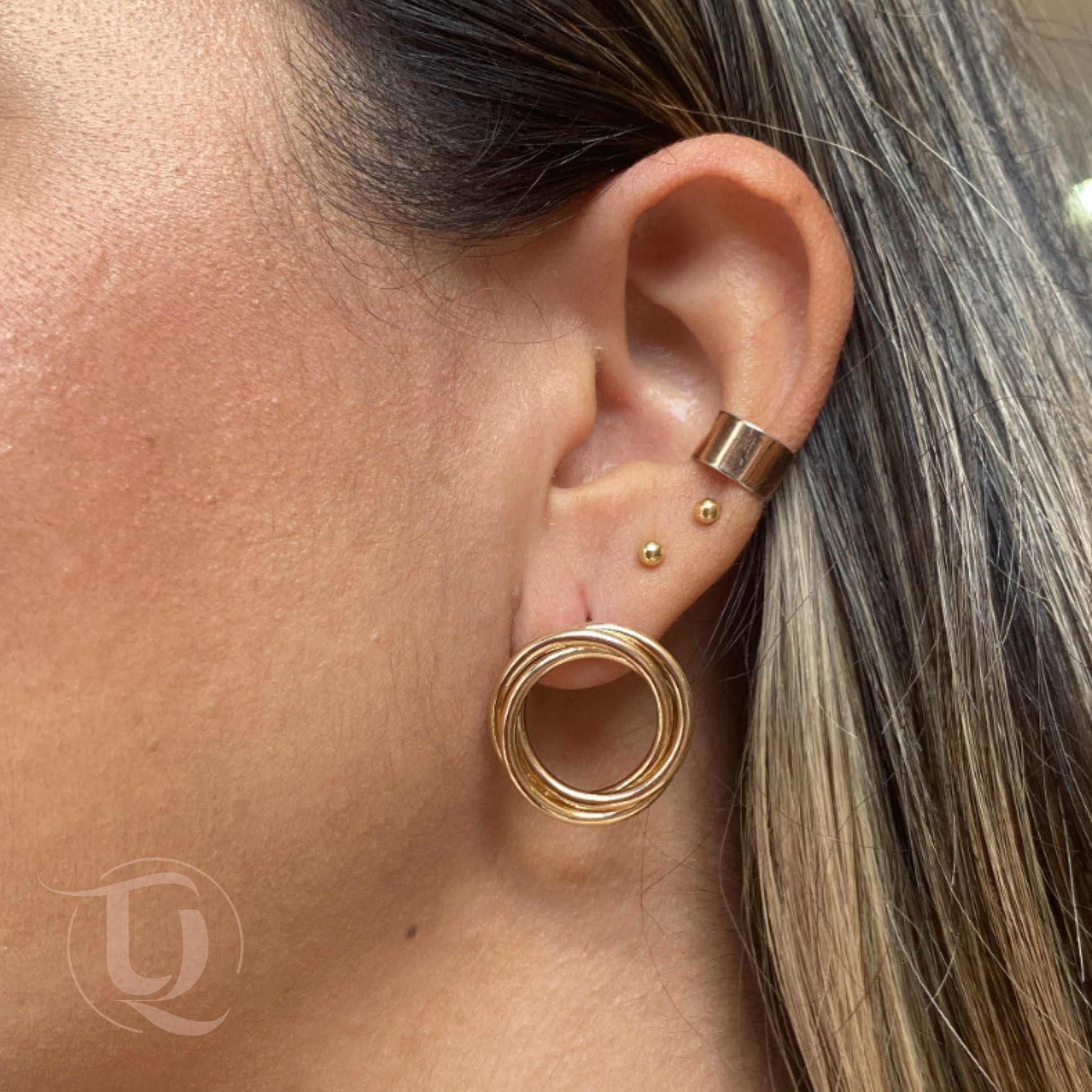 Brinco entrelaçado aro triplo redondo