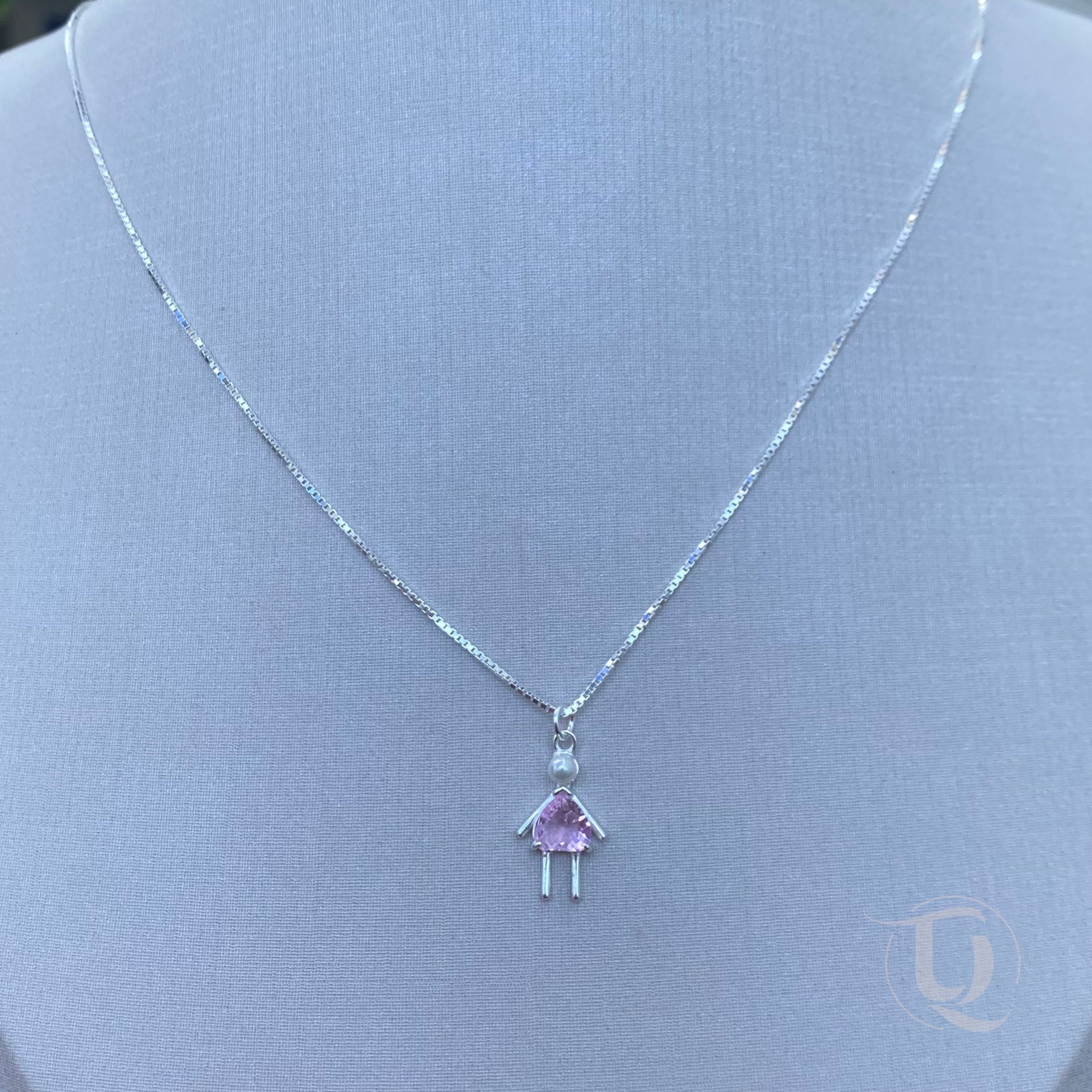 Colar 1 filha de coração/pérola prata 925 - 45 cm